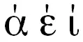 | Αα | Ββ | Γγ | Δδ | Εε | Ζζ | Ηη | Θθ | Ιι | Κκ | Λλ | Μμ | Νν | Ξξ | Οο | Ππ | Ρρ | Σσς | Ττ | Υυ | Φφ | Χχ | Ψψ | Ωω | ||