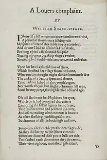 الصفحة الأولى من "شكوى عاشق" من سوناتات شكسبير، 1609