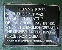 الشلالات موجودة في المكان الذي وقعت فيه معركة لاس تشوريراس في عام 1657، عندما هزم البريطانيون قوة استكشافية إسبانية قادمة من كوبا.[6] الصورة أعلاه تبين اللوحة التي وضعت في قاع الشلالات من قبل الجمعية التاريخية الجامايكية كذكرى لهذا الحدث.