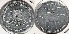 في عام 1967، أصدرت عملات معدنية باسم الجمهورية الصومالية من فئات 5 و10 و50 سنت وشلن واحد. وفي عام 1976، أصدرت عملات معدنية باسم جمهورية الصومال الديمقراطية من فئات 5 و 10 و 50 سنت وشلن واحد.
