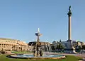 Schlossplatz at dawn with the Jubiläumssäule in front of the New Castle.