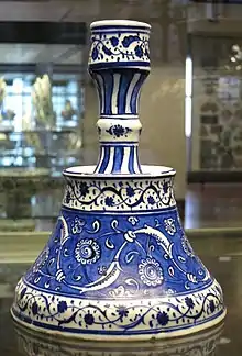 حيث قد يصنع من الحجر المحفور أو من النحاس أو الفضة وقد يكون محفورا أو منقوشا أو من الخشب المطعم، وقد يكون مخصصا لحمل شمعة واحدة أو لعدة شموع.
