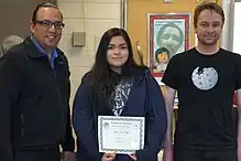 امرأة تحصل على شهادة اعتماد لإكمال ورشة تحرير ويكيبيديا (2017)