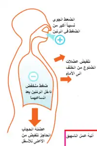عند حدوث الشهيق تنقبض عضلة الحجاب الحاجز دافعةً الرئتين للاتساع من الأعلى للأسفل، كما تنقبض عضلات الضلوع دافعةً الرئتين للاتساع من الأمام إلى الخلف، هاتان الحركتان تعملان معاً على زيادة حجم الرئتين فيقل ضغط الهواء فيهما، مما يؤدي لحدوث فرق بالضغط بين الضغط الجوي و ضغط الهواء في الرئتين فيندفع الهواء نحو الرئتين .