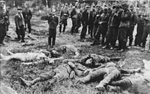 بعد الغزو، عهد هتلر إلى قوات الأمن الخاصة بإجراءات إبادة يطلق عليها اسم عملية تاننبرغ وإيه بي أكتون لاجتثاث القادة الذين من المحتمل أن يشكلوا مقاومة ضد الاحتلال الألماني. ارتكبت عمليات القتل من قبل أينزاتسغروبن (فرق العمل؛ المجموعات المنتشرة)، بمساعدة المجموعات شبه العسكرية المحلية. تم أختيار الرجال من وحدات أينزاتسغروبن من قوات الأمن الخاصة والشرطة الأمنية والشرطة. [47] قُتل حوالي 65000 مدني بولندي، بما في ذلك النشطاء والمثقفين والعلماء والمدرسين والجهات الفاعلة والضباط السابقين وغيرهم، بحلول نهاية عام 1939. [1] [45] عندما سجلت قيادة الجيش شكاوى بشأن الوحشية التي يتم مواجهتها من قبل أينزاتسغروبن، أبلغهم هايدريش أنه يتصرف "وفقا لترتيب خاص من الفوهرر." [48] أول عملية إطلاق نار جماعي منهجي لليهود من قبل أينزاتسغروبن وقعت في 6 سبتمبر 1939 أثناء الهجوم على كراكوف. [9]
