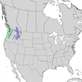 موطنه مناطق شمال غرب الولايات المتحدة من شمال كاليفورنيا إلى كولومبيا البريطانية مرورًا بأوريغون وواشنطن.