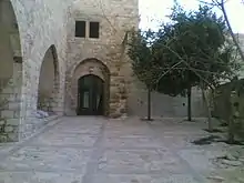 1)مبنى بازيليكي يشبه تخطيط الكنائس ويعود لفترة البيزنطية، والمبنى محاط برصف فسيفسائي جميل وملون يشبه زخرفة ورسوم لأوراق العنب والأشكال الهندسية.