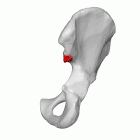 ![]() الشوكة الحرقفية الخلفية السفلية في عظم الورك الأيمن. الشوكة الحرقفية الخلفية السفلية في عظم الورك الأيمن. | |