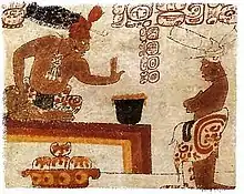 في قبر من حضارة المايا يعود تاريخه بين 460–480 للميلاد، عُثر على أوانٍ منقوش عليها رسومات تشير إلى الكاكاو حسب نظام كتابة المايا، ذلك مع وجود بقايا من مشروب الشوكولاتة، ممّا يشير إلى أن المايا كانوا يشربون الشوكولاتة حوالي سنة 400 بعد الميلاد.[8] تبيّن الوثائق في هيروغليفيّة المايا أنّ مشروب الشوكولاتة كان يحضّر في المناسبات، بالإضافة إلى الاستخدام اليومي.[9] كان المايا يزرعون أشجار الكاكاو في الساحات الخلفيّة لمنازلهم،[10] وكانوا يستخدمون بذور الكاكاو لصنع مشروب مرّ هو شراب الشوكولاتل.[11]