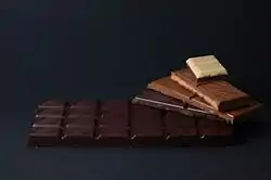 ![]() الشوكولاتة تأتي بأشكال متنوعة ومختلفة، فمنها الشكل الداكن أو الأبيض أو الممتزج بالحليب أو بالمكسرات | |