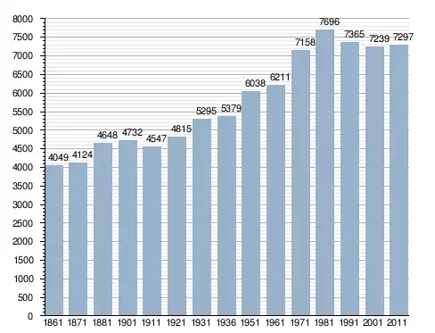 في سنة 1861 بلغ عدد السكان 4٬049 نسمة، وتطور العدد ليصل في سنة 2011 لـ 7٬297 نسمة.