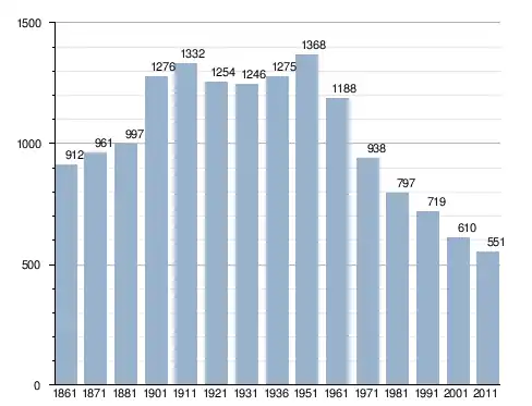 في سنة 1861 بلغ عدد السكان 912 نسمة، وتطور العدد ليصل في سنة 2011 لـ 551 نسمة.