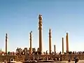 برسبوليس (بالفارسية: تخت جمشيد، باليونانية: Πέρσης πόλις برس بولس) هي عاصمة الإمبراطورية الأخمينية (550-330ق.م). يبعد هذا الموقع مسافة 70 كم شمال شرق مدينة شيراز في محافظة فارس في إيران. في الفارسية الحديثة، يعرف هذا الموقع باسم تخت جمشيد (أي عرش جمشيد) أو پارسه. أقدم بقايا هذا الموقع يعود تاريخها إلى 515ق.م. يدعى هذا الموقع عند الفرس القدامى باسم پارسه، والتي تعني "مدينة الفرس". وترجمة اسم برسبوليس في اليونانية تعني "المدينة الفارسية". وقد تم إعلان تخت جمشيد كموقع للتراث العالمي من قبل اليونسكو.[41] الأدلة الآثارية تثبت بأن أولى بقايا هذا الموقع قد تم إنشائها في عام 515ق.م. عالم الآثار الفرنسي، رينيه غودار، الذي قام يالتنقيب في الموقع في بداية العقد الرابع من القرن السابق، افترض أن قورش الكبير قام باختبار موقع تخت جمشيد، لكن دارا الأول هو من قام ببناء المصطبة والقصور العظيمة. وقد أمر دارا الأول ببناء قصر آبادانا وقاعة المجلس (القاعة ذات الأبواب الثلاث)، وخزانة الدولة وما حولها. وقد تم إنهائها في عهد إبنه، الملك خشایار الأول. والعديد من المنشأت تم بنائها على نفس المصطبة إلى حين سقوط السلالة الأخمينية.[42] |