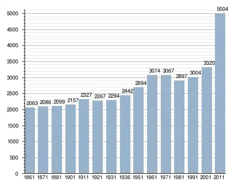 في سنة 1861 بلغ عدد السكان 2٬063 نسمة، وتطور العدد ليصل في سنة 2011 لـ 5٬004 نسمة.