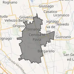 - "صفحة شيرتوزا دي بافيا (بافيا) في خريطة الشارع المفتوحة". OpenStreetMap. اطلع عليه بتاريخ 4 مارس 2021. الوسيط
