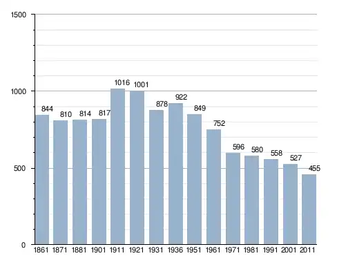 في سنة 1861 بلغ عدد السكان 844 نسمة، وتطور العدد ليصل في سنة 2011 لـ 455 نسمة.