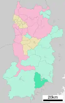 وتحيط بها كاميكتاياما في اتجاه الشمال و توتسوكاوا في الاتجاه الغربي، وهي تقع في أقصى الجنوب الشرقي لمحافظة نارا. وهي تشارك الحدود في الشرق مع كومانو الواقعة في محافظة ميه، و جنوباً مع كيتياما الواقعة في محافظة واكاياما.