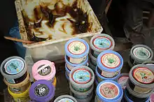 - يغطّى الخليط بعد صبّه في قالب بغطاء بلاستيك ويُترك كي يجمد.