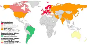 | الولايات المتحدة | تاوروس | دلتا 2 | فالكون 9 | أطلس 5, دلتا 4 | أطلس 5, أطلس 5 الثقيل,[F 3] دلتا 4 الثقيل |