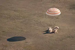 المركبة الفضائية سويوز كبسولة الفضاء بصاروخ كابح لتخفيف أثر الهبوط