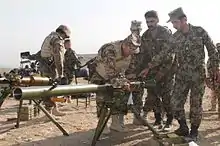 (صاروخ الرمح SPG-9) صاروخ روسي محمول على قوائم ثلاثية الأرجل، عيار73 ملم، صنع أبان الفترة السوفيتية، أدخل في الخدمة عام 1962م، وزنه 47.5 كجم ويبلغ مع القوائم 50.5 كجم، طوله 2.11 متر، سرعته من 250-435 متر/ث، مدى الصاروخ 1200-6500 متر، المدى المؤثر 800 متر.[1]