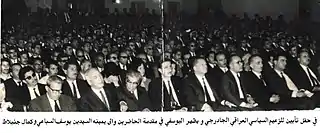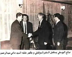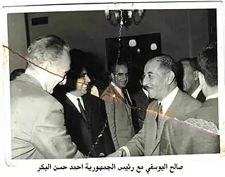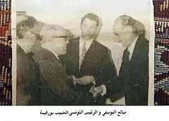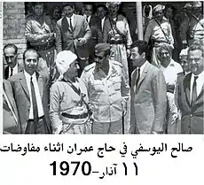 صالح اليوسفي في إحدى الاحتفالات الرسمية ويظهر إلى يساره نعيم حداد وخلفه مكرم طالباني.
