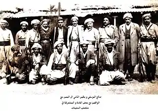 صالح اليوسفي وهو يتوسط مجموعة من الشخصيات الكردية في منطقة آزادي.