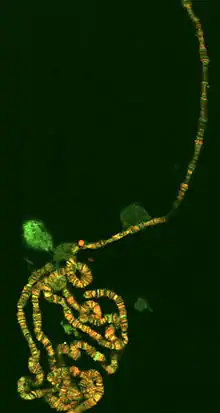 كروموسومات عديدة الخيوط في خلية غدد اللعاب Chironomus