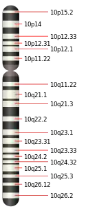 |CitationClass=تم تجاهله (مساعدة) - "Statistics & Downloads for chromosome 10". HUGO Gene Nomenclature Committee. 2017-05-12. مؤرشف من الأصل في 16 يناير 2018. اطلع عليه بتاريخ 19 مايو 2017. الوسيط