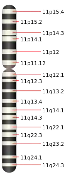 ![]() زوج صبغي 11 بشري (بعد ارتباط جي). واحد من الأم والآخر من الأب. | |