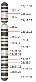 ![]() زوج صبغي 12 بشري (بعد ارتباط جي). واحد من الأم والآخر من الأب. | |