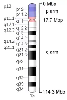 هذه قائمة لبعض الأمراض و الاضطرابات المرتبطة بالجينات في الصبغي 13