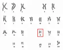 ![]() زوج الصبغي 16 لرجل كما تظهر بواسطة الكاريوغرام. | |