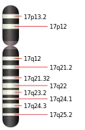 ![]() زوج الصبغي 17 لرجل كما تظهر بواسطة الكاريوغرام. | |