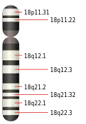 ![]() زوج صبغي 18 بشري (بعد ارتباط جي). واحد من الأم والآخر من الأب. | |