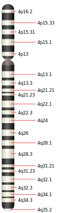 ![]() زوج الصبغي 4 لرجل كما تظهر بواسطة الكاريوغرام. | |