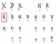 ![]() زوج الصبغي 6 لرجل كما تظهر بواسطة الكاريوغرام. | |