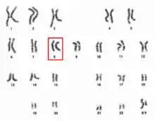 ![]() زوج الصبغي 8 لرجل كما تظهر بواسطة الكاريوغرام. | |