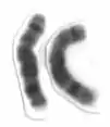 ![]() زوج صبغي 8 بشري (بعد ارتباط جي). واحد من الأم والآخر من الأب. | |