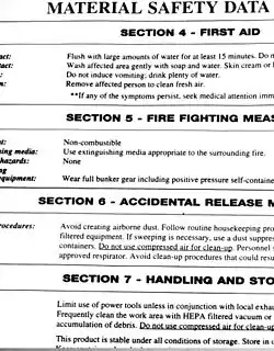 - "Hazard Communication Standard: Safety Data Sheets". U.S. Occupational Safety and Health Administration. مؤرشف من الأصل في 1 أغسطس 2019. اطلع عليه بتاريخ 20 أكتوبر 2017. الوسيط