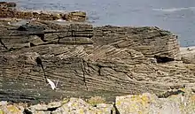 و العكس من الفراش المتقاطع هو التصفيح المتوازي حيث كل الطبقات الرسوبية موازية.[27] وتعود الاختلافات في التصفيحات عموما إلى التغيرات الدورية في إمدادات الرواسب التي تتسببعلى سبيل المثال في التغيرات الموسمية في هطول الأمطار أو درجة الحرارة أو النشاط الكيميائي الحيوي. لاميناي التي تمثل التغيرات الموسمية (على غرار حلقات شجرة) تسمى فارفيس. ويمكن تسمية أي صخرة رسوبية تتكون من ملليمتر أو طبقات أدق مقياس مع مصطلح لامينيت العام عندما الصخور الرسوبية ليس لها التصفيح على الإطلاق ويسمى طابعها الهيكلي فراش ضخمة.