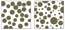 - عندما تودع جسيمات الرمال الحجم والفضاء بين الحبوب إما تبقى مفتوحة أو مليئة بالطين (الطمي أو جسيمات الطين الحجم).