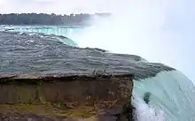 يعتبر جرف نياجرا، الذي تتدفق منه شلالات نياجرا، مثالاً على الانحدار أو الجرف. في شلالات نياجرا، تكون صخور الغطاء هي قاع النهر الواقع فوق الشلالات، وهذا ما يمنع النهر من تعرية وجه الشلال بسرعة كبيرة. في هذه الصورة، تعتبر الطبقة الرفيعة الداكنة الموجودة في المقدمة والتي لا تجري المياه فيها هي صخور الغطاء. وتتكون صخور الغطاء في النياجرا من الحجر الجيري الدولوميتي (دولوستون). ويمكن تشبيه صخور الغطاء بالقشرة الخارجية للقالب التي تكون أكثر صلابة من الطبقة السفلية.