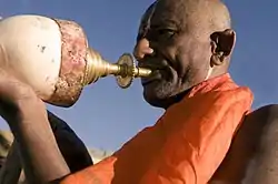 غالبًا ما يُشار إلى صدفة شانكا (صدفة توربينيلا بيروم (Turbinella pyrum)، نوع من فصيلة البطنيات التوربينيليديا (Turbinellidae) في الغرب كصدفة المحار، أو صدفة شانك. يتم استخدام هذه الصدفة كأحد العناصر الطقوسية في الهندوسية. ويتم استخدام الصدفة كبوق شعائري، كجزء من الممارسات الدينية، على سبيل المثال طقوس تكريم الآلهة (Puja). يدوي بوق الشانك أثناء العبادة في مواضع محددة، مصاحبًا للأجراس الشعائرية والغناء. ونظرًا لكونها أداة بهجة واستبشار، فغالبًا ما يتم العزف عليها في طقوس بوجا لتكريم إلهة الرفاهية والرخاء (Lakshmi) في المعبد أو في المنزل.