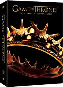 |CitationClass=تم تجاهله (مساعدة) - Hibberd, James. "'Game of Thrones' season 2 DVD date and extras revealed". Entertainment Weekly. مؤرشف من الأصل في 04 يوليو 2014. اطلع عليه بتاريخ 20 نوفمبر 2012. الوسيط