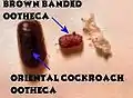 تدل حاويات البيوض على وجود الصراصير.وهي“أغلفة” تحتوي حتى ست عشرة بيضة، وهذا عدد البيوض بالنسبة للصراصير الشرقية. تضع الإناث هذه الحاويات ثم تفقس البيوض بمفردها بعد قرابة الشهرين. ويصعب التخلص من الصراصير الشرقية أكثر من غيرها من الصراصير، فعلى الرغم من سهولة قتل البالغ منها باستخدام المبيدات الحشرية إلا أن المبيدات تتبخر، وهكذا، وبعد مرور شهرين، تتمكن الإناث من فقس حوريات جديدة.