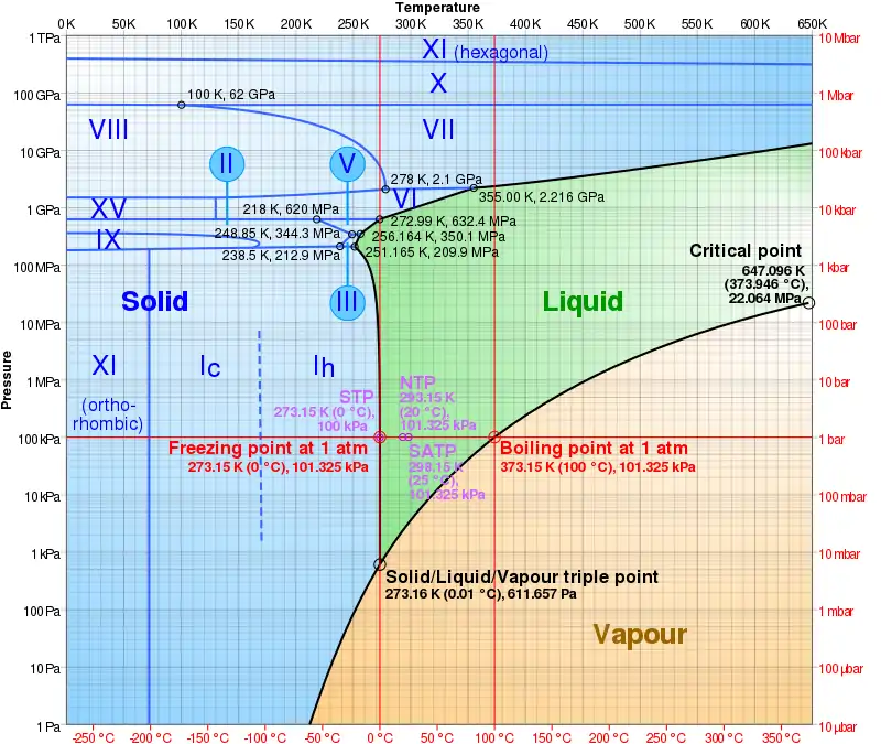 - Martin Chaplin. "Water Phase Diagram". London South Bank University. مؤرشف من الأصل في 27 أبريل 2019. اطلع عليه بتاريخ 21 يناير 2008. الوسيط