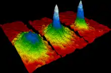 بعد سبعين عامًا ، في عام 1995 ، أنتج إريك كورنيل وكارل وايمان أول مكثف غازي في مختبر جامعة كولورادو في بولدر NIST-JILA ، باستخدام غاز من ذرات الروبيديوم المبردة إلى 170 نانوكلفن (nK) [7] (1.7 × 10-7 ك). [8]