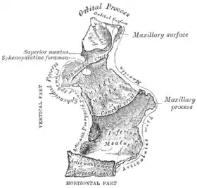![]() الوجه الخلفي للعظم الحنكي الأيسر الوجه الخلفي للعظم الحنكي الأيسر | |