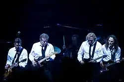![]() Eagles (left to right): Glenn Frey, Don Henley, Joe Walsh, and Timothy B. Schmit during their Long Road Out of Eden Tour | |